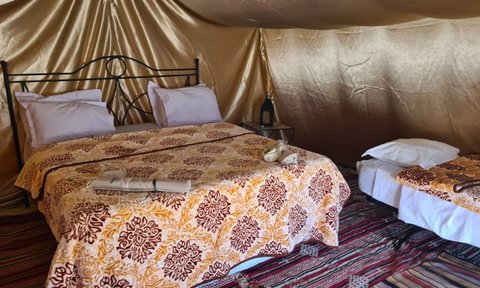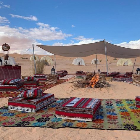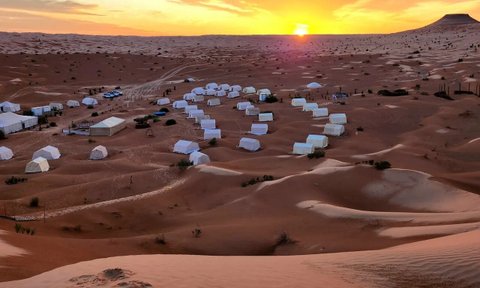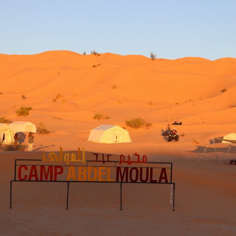 Ca. 100 km von Douz entfernt befindet sich das eindrucksvolle Abdelmoula Camp inmitten der Sahara. Umgeben von meterhohen Dünen bietet dieses Wüstencamp eine Mischung aus traditioneller Eleganz und Moderne. Hier übernachtet ihr in komfortablen Zelten mit einem eigenen WC sowie einer Warmwasserdusche. Genießt köstliche, traditionelle Gerichte oder einen aromatischen Kaffee im Herzen der Wüste und sitzen abends gemütlich am Lagerfeuer beisammen.