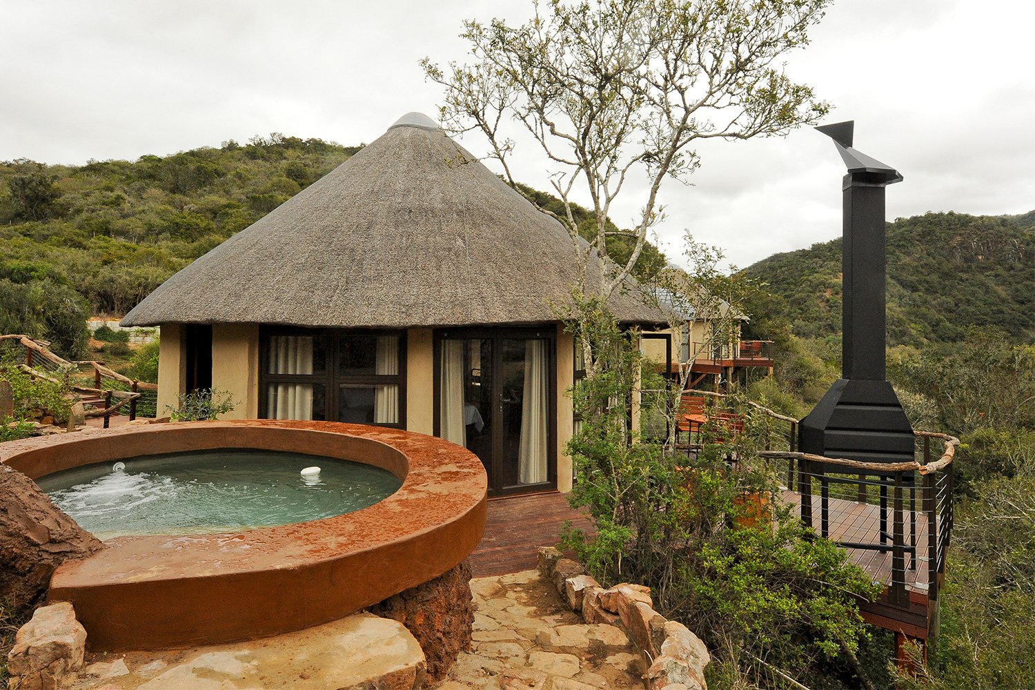 Das Camp bietet komfortable Unterkünfte sowie zahlreiche familienfreundliche Annehmlichkeiten. Kinder können sich auf dem Spielplatz austoben, während sich Eltern am Swimmingpool entspannen. Das hauseigene Restaurant serviert leckere lokale und internationale Gerichte, und ein kleiner Laden sorgt für alles Nötige. Wer gerne draußen isst, kann an den Grill- und Picknickplätzen unter dem afrikanischen Sternenhimmel gesellige Abende verbringen.