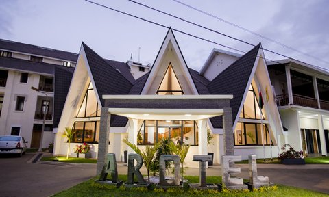 Das Arotel in Antsirabe, Madagaskar, bietet helle und komfortable Zimmer sowie Suiten, die mit Klimaanlage, WLAN, Fernseher, Minibar, Teekocher, Haartrockner und eigenem Bad ausgestattet sind. Zum Entspannen laden die hauseigenen Restaurants mit einer Auswahl an lokaler und internationaler Küche sowie die Bar für erfrischende Getränke ein.