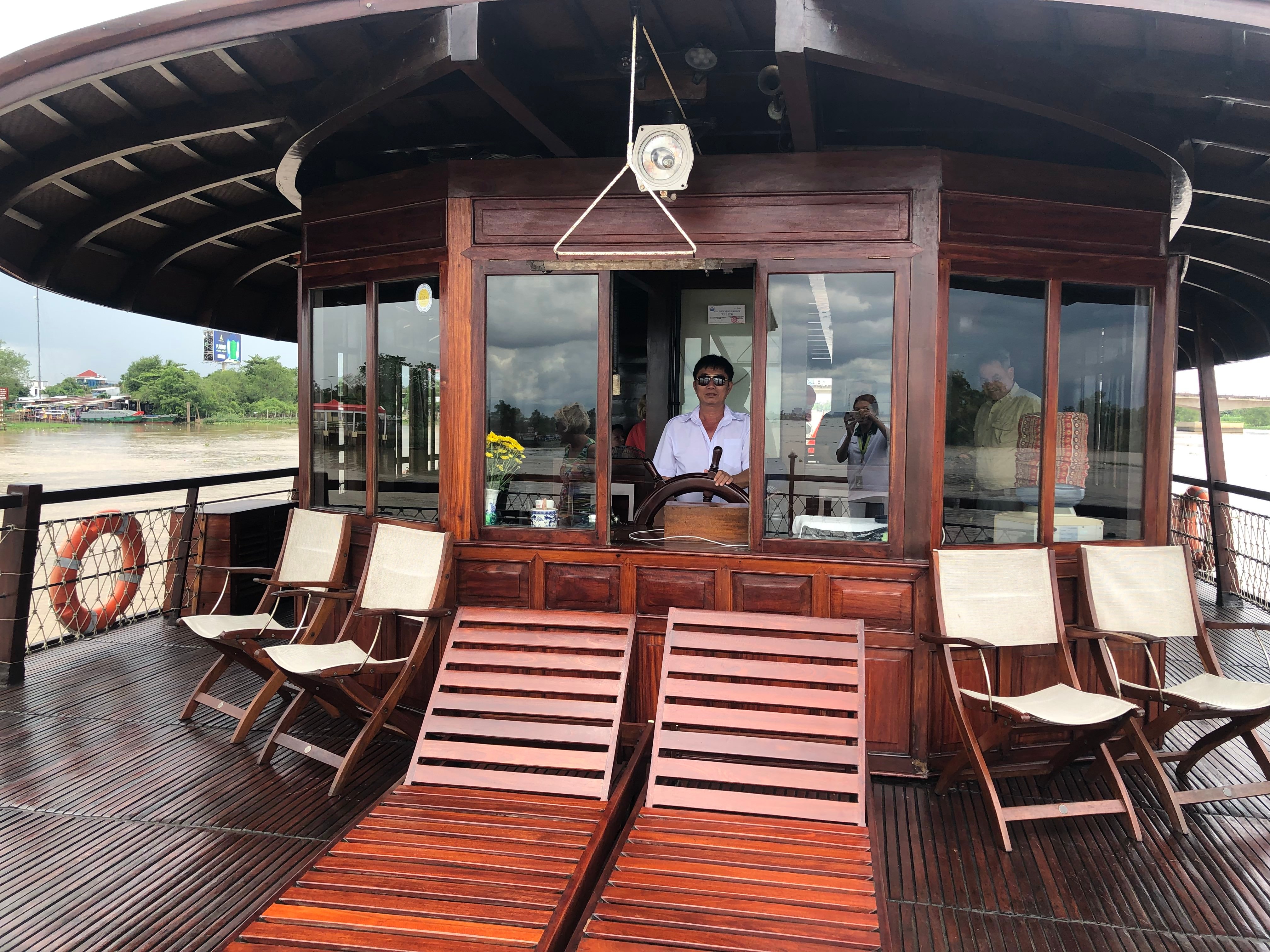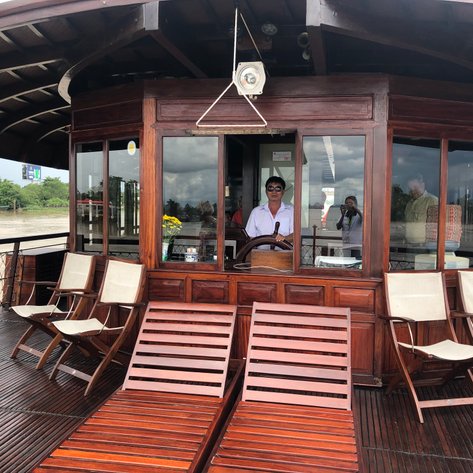 Die Schiffe der Bassac Cruise Gesellschaft sind zu Urlaubsschiffen umgebaute ehemalige Reisfrachter. Lokale Handwerker haben die traditionellen Holzschiffe aufwendig modernisiert, sodass Gäste komfortabel das Mekongdelta erkunden können.