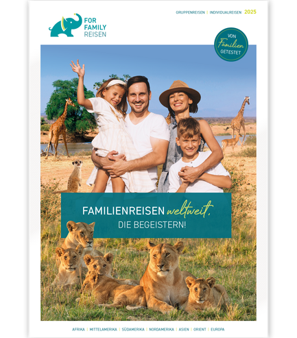 Mit 84 Erlebnisreisen in 50 Länder bietet der Familienreisen-Katalog 2025 sowohl viele neue Reiseziele als auch beliebte Gruppen- und Individualreisen für unvergessliche Familienabenteuer.