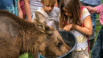 Die Familien können viele Tagestouren unternehmen, davon ist aber keine verpflichtend. Hier können wir zum Beispiel eine Huskeyfarm besuchen, wo wir für wenig Geld die Tiere streicheln können und uns leckeren Kuchen schmecken lassen. Eine Elchfarm steht auch auf dem Programm.