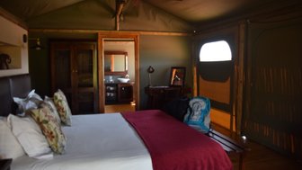 Alle Zelte stehen mit Blick auf das Wasserloch und abends hört man die Flusspferde darin laut schnauben. Vom Restaurant der Lodge aus hat man die absolute Pole Position und kann mit etwas Glück vielen Tieren beim Trinken zusehen. Dann geht das Abenteuer richtig los: In offenen Jeeps geht es durch ein Tor im Zaun der die Lodge hinaus ins offene Gelände! Es dauert sicher nicht lange, bis man bereits die ersten Tiere entdecken kann- ob das nun die riesigen Giraffen sind, gemütlich durch die Natur schlendernde Rhinos oder eine Elefantenherde, bleibt dem Zufall überlassen- ganz sicher ist aber, dass die Safaris und die gemütliche Atmosphäre der Lodge noch lange in Erinnerung bleiben.