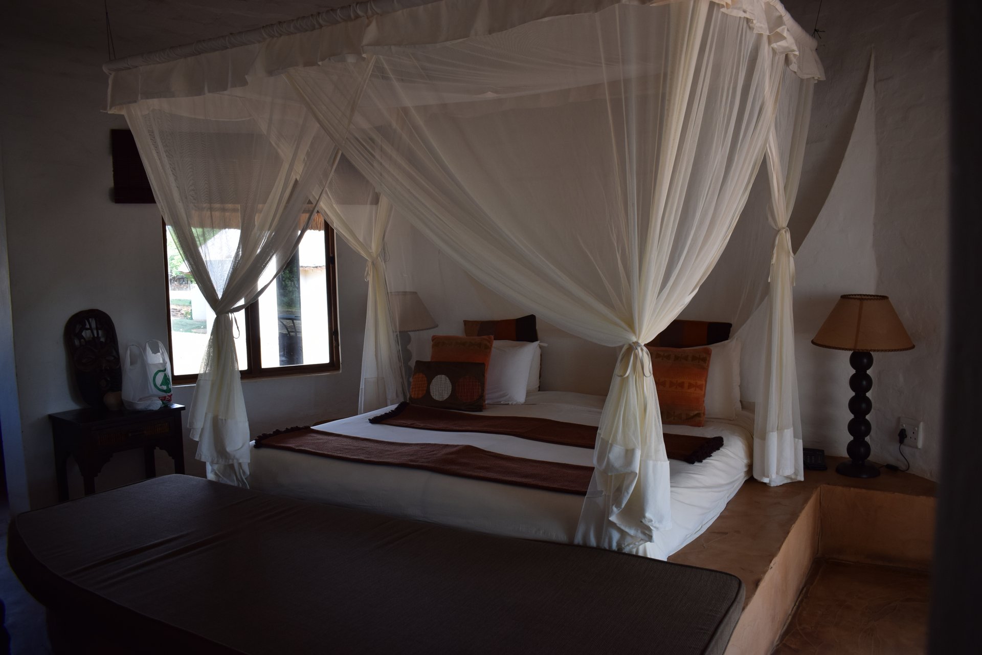 Durch den Garten schlendert hin und wieder die Hausgiraffe, die gerne auch mal Halt an einem der riesigen Bäume vor den Cottages macht und an den Blättern in den Wipfeln knabbert. Vom Restaurant der Lodge aus kann man über einen kleinen Pfad zum Straußengehege spazieren und den lustigen Tierchen guten Tag sagen. Wer früh aufsteht, kann mit den sensationell guten Rangern zu einer Safari in den nebenan gelegenen Hluhluwe-iMfolozi Nationalpark fahren und der ist wirklich eine Wucht! Landschaftlich ist dieser sehr abwechslungsreich und der Tierreichtum ist enorm! Am Nachmittag kann man an einer Safari durch das Gelände um die Lodge herum teilnehmen, oder zu einer spannenden Bootssafari in St. Lucia aufbrechen. Langweilig wird es in dieser Unterkunft somit also nicht so schnell.