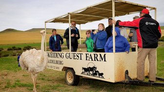 Am Abend brutzelt Neels, der Hausherr, leckere Köstlichkeiten auf dem offenen Feuer und seine Frau Anné-Lize zaubert Köstlichkeiten auf den Tisch, die mir noch lange im Gedächtnis geblieben sind. Am Morgen kann man mit Neels zu einer Farmtour aufbrechen und dabei helfen, die Tiere zu füttern und auf den Weiden nach dem Rechten zu sehen- das macht nicht nur wahnsinnigen Spaß, man lernt auch ganz spielerisch unglaublich viel über die Flora und Fauna, sowie das Leben als Farmer in Südafrika. Abends hat mich der klare Himmel begeistert, ich habe selten so viele Sterne gesehen wie dort!