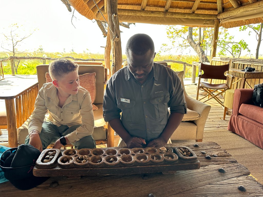 Wir haben Botswana bei der Fly-In-Safari mit Kindern auf eine ganz besondere und exklusive Art erlebt. Die familiäre Atmosphäre auf den Lodges und die 1 zu 1 Betreuung durch die hochwertigen Guides war fantastisch, und wir haben uns jederzeit sehr wohl gefühlt. Wir haben sehr nette andere Gäste kennengelernt und vor allem auch viele Einheimische in den Camps. Die Mitarbeiter und Guides sind alle sehr freundlich, sie haben Humor, sind herzlich zu Kindern und singen und tanzen gerne. Unseren Kindern haben sie das traditionelle Bohnenspiel beigebracht, welches sie immer noch mit Begeisterung zu Hause spielen.