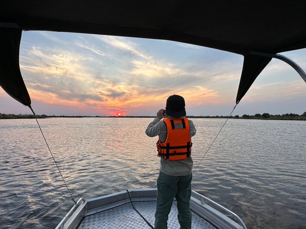 Im Okavango-Delta durften unsere Kinder mit dem Guide zusätzlich vor der Nachmittagsaktivität eine Runde ohne Eltern angeln gehen und kamen ganz stolz mit mehreren Fischen zurück, die dann sogar zum Abendessen serviert wurden! Nach dem Abendessen sitzen alle Gäste zusammen am Lagerfeuer und tauschen sich über die Erlebnisse des Tages aus. Bei dieser Gelegenheit werden mit dem Guide auch die Aktivitäten für den nächsten Tag besprochen.