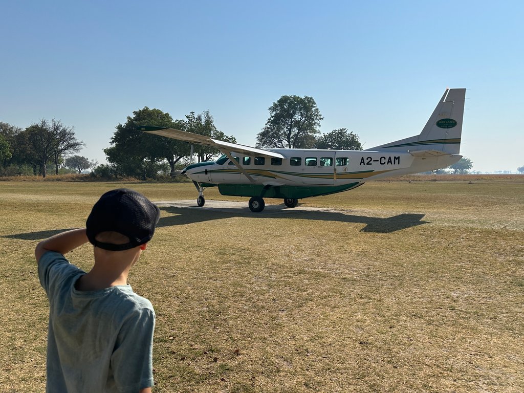 Nach der Landung in Maun werden die Familien persönlich in Empfang genommen und dem Piloten des Propeller-Flugzeugs übergeben, der sie zur ersten Unterkunft fliegt. Auf der Landebahn, dem sogenannten Airstrip, wartet bereits der Guide, der Eltern und Kinder abholt und sie während der nächsten Tage bei den Aktivitäten begleitet.