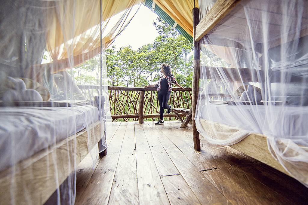 In La Tigra gibt es zwar eigentlich keine Mücken, sicherheitshalber wurden nun trotzdem alle Familienzimmer der Lodge mit Moskitonetzen ausgestattet. So schläft man in Costa Rica mit Kindern ganz beruhigt mitten im Dschungel.