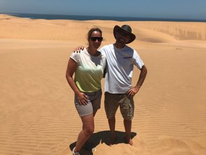 Am frühen Morgen startet die Living Desert Tour in Swakopmund bei unseren Namibia Reisen mit Kindern. Gemeinsam mit unserem Reiseleiter fahren wir zu den fantastischen Dünen des Wüstengürtels, der direkt an Swakopmund angrenzt. Hier fahren wir in wüstentauglichen Jeeps mitten hinein in die terracottafarbene Sandpracht. Begleitet werden die Familien dabei von einem echten Wüstenkenner, der uns anschaulich und interaktiv erläutert, wie artenreich die Tier- und Pflanzenwelt der Wüste ist. Gemeinsam gehen wir auf die Suche nach den kleinsten Lebewesen und suchen nach Tierspuren und Nahrungsquellen. Mit seinem geschulten Auge hält der Guide immer wieder an, sobald sich ein kleines Tier ganz flink im Sand bewegt. Dabei ist es wichtig, dass alle Teilnehmer auf derselben Spur laufen, damit die Wüste möglichst unberührt bleibt. Naturschutz wird hier groß geschrieben und uns wird eindrücklich veranschaulicht, welche Auswirkungen ein Missachten der Regeln haben kann.