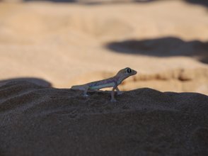 Faszinierend ist auch der durchsichtige Wüstengecko, der niemals direkt dem Sonnenlicht ausgesetzt werden darf – unser Guide achtet sehr genau darauf, dass jemand dem kleinen zarten Wesen Schatten spendet. Witzig ist auch der ,,Michael Jackson‘‘ der Wüste, eine Wüsteneidechse, die sich durch tanzende Bewegungen vor der Hitze des glühenden Sandes schützt. Und wer entlarvt als erstes die Tarnung des Wüstenchamäleons?