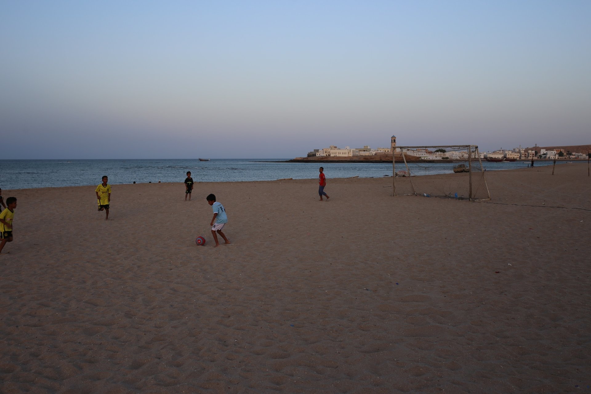 Den Abschluss unseres Oman Urlaubs mit Kindern bildet die Küste. Den Tag verbringen wir in Sur, spielen Fußball an Strand und erkunden eine Dhau-Werft, die immer noch die riesigen Holzschiffe wie zu Sindbads Zeiten erbaut.