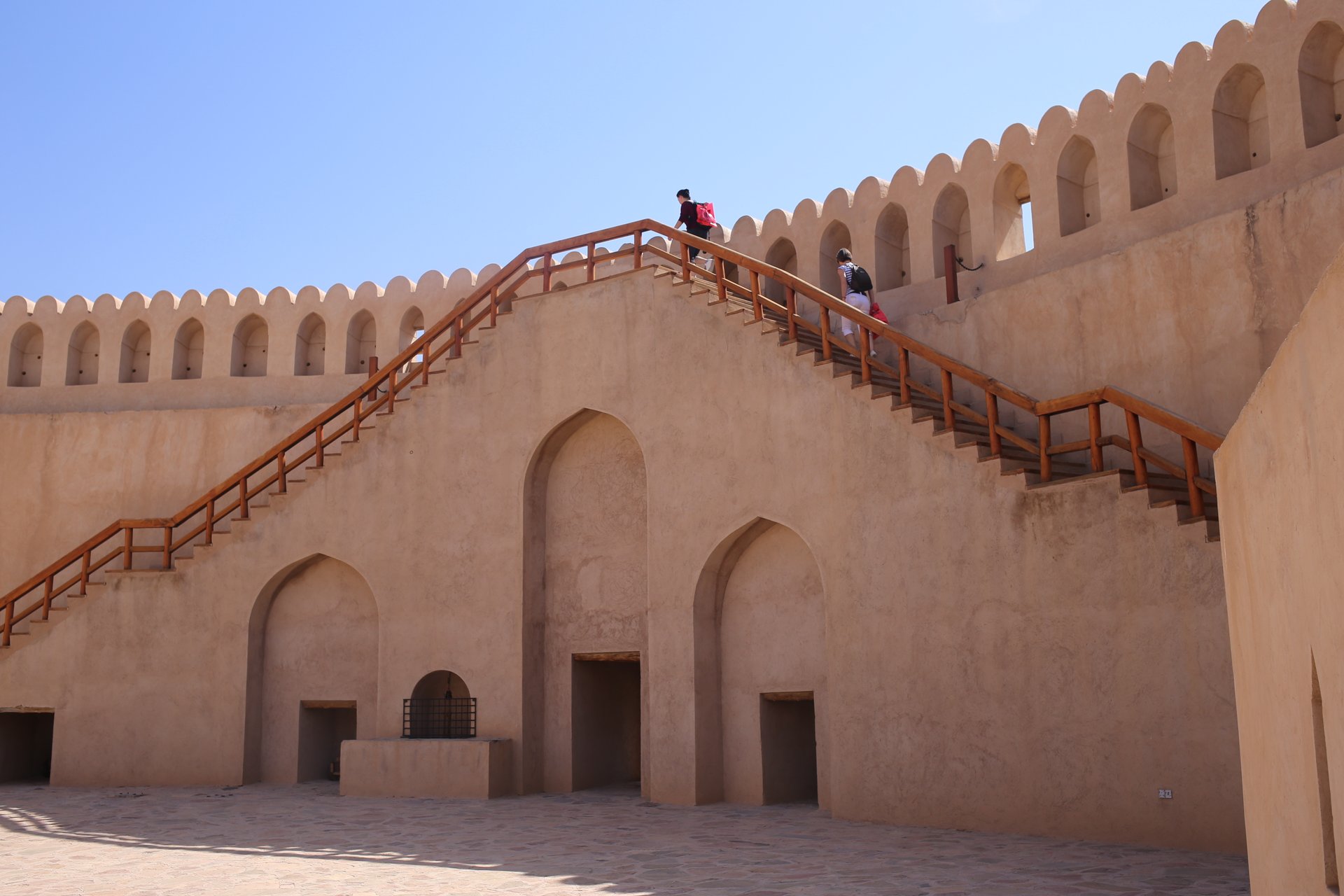 Die Aflaaj, das Bewässerungssystem von Oman, wandelt so viele Teile des Landes in tropische Oasen. In der näheren Umgebung besichtigen wir auch das berühmte Jabrin Castle – eine mächtige Festung! Und die Stadt Al Hamra mit den alten Häusern aus Lehm. In einem Haus, das zu einer Art Museum umfunktioniert wurde, zeigen uns die Frauen, welche Kleidung man hier getragen hat, und wie man sich mit einer Sandelholzpaste vor der Sonne schützt. Natürlich gibt es auch hier wieder Datteln und Kawa...