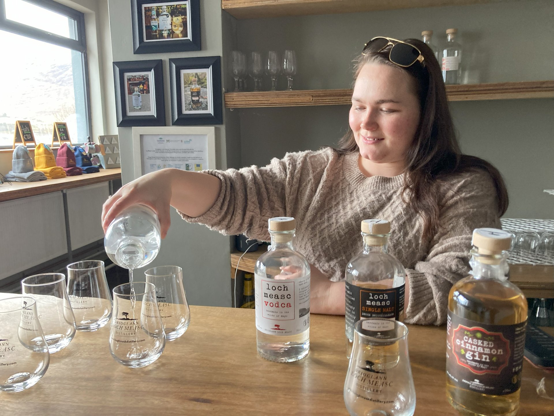 Die Whiskey-Produktion in Irland hat eine jahrhundertealte Tradition und ist weltweit für ihre weichen, milden Aromen bekannt. Neben einigen bekannteren Destillerien gibt es auch zahlreiche kleinere Betriebe, insgesamt ca. 50 an der Zahl. Wie die Familien haben auch wir die Loch Measc Distillery besucht, die 2025 bei den renommierten World Whiskies Awards Ireland die Goldmedaille in der Kategorie „Best Irish New Make & Young Spirit“ gewann. Eine halbe Stunde Fahrtzeit vom schönen Cong entfernt liegt die Destillerie inmitten der schönen Natur am Lough Mask See.