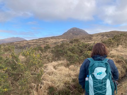 Am Fuße des Diamond Hill unternehmen wir eine reizvolle Wanderung, die durch Heide- und Torflandschaften führt und Ihnen atemberaubende Ausblicke auf die Küste und die umliegenden Twelve Bens-Berge eröffnet. Diese Bergkette, auch Twelve Pins genannt, besteht aus zwölf markanten Gipfeln und ist bekannt für ihre wilden, zerklüfteten Formen. Unsere Wanderung, die auch die Familien unternehmen, fanden wir angenehm zu gehen, da die Wege sehr gut ausgebaut sind, und oben angekommen haben wir einen wunderbaren Rundumblick sowohl auf das Inland als auch auf die Küste genossen.