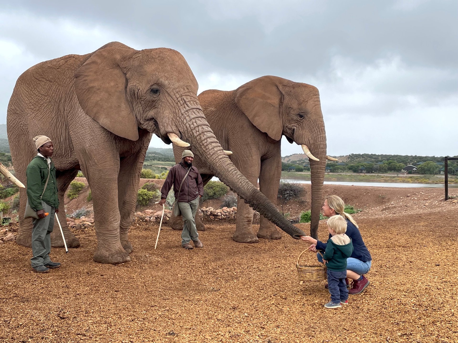 Astrid Därr: „In den privaten Lodges ist man mit einem Kleinkind in den offenen Safarifahrzeugen unterwegs. Ich habe anscheinend einen typischen Jungen und der war natürlich schon mal ganz begeistert von den Geländewagenfahrten und dem Geholper auf den Pisten. Die Tierbegegnungen sind auch ganz besonders, weil man den Tieren viel näherkommt. In der Buffelsdrift Game Lodge kann man sogar die Elefanten füttern und das war natürlich nicht nur für mich, sondern auch für meinen Sohn ein ganz besonderes Erlebnis. Für ihn war das wahnsinnig aufregend, selber dem Elefanten die Karotte hinhalten zu können und zu erleben, wie der sich diese mit seinem Rüssel schnappte. Mein Sohn hat jedes Mal vor Freude gequietscht, weil er so glücklich war den Elefanten zu begegnen. Die Tierpfleger waren auch ganz beeindruckt, dass der Kleine so mutig ist. Mit den Elefanten habe ich jetzt auch ein Bild im Kinderzimmer hängen, wo wir zusammen die Elefanten füttern und jedes Mal, wenn er das Bild sieht, zeigt er drauf. Wir hatten auf der Reise ein paar Erlebnisse, bei denen wir den Tieren ganz nah waren. Bei manchen Lodges stehen auch die Antilopen direkt vor dem Zimmer oder am Zelt und man sieht diese dann grasen. Das ist natürlich etwas ganz anderes, als wenn man die Tiere nur aus dem Zoo kennt. Deshalb denke ich, dass das auch für kleine Kinder sehr eindrucksvoll ist. Allerdings müssen die Kinder für so eine Reise schon gerne im Auto sitzen, das muss man dazu sagen. Wenn man ein Kind hat, das gar nicht gerne Auto fährt, dann macht das keinen Sinn."