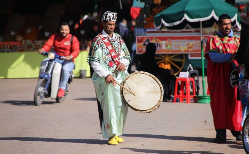Ein Besuch auf dem berühmten Djemaa el Fna mit Kindern ist natürlich Pflicht: Hier kann man wirklich noch ein Treiben wie in 1001 Nacht erleben! Wir sind zwar nur tagsüber da, aber auch zu dieser zu Zeit hört man überall eindringliches Trommeln und Flöten. Die Kinder staunen: Sie sehen zum ersten Mal Schlangenbeschwörer. Auch für mich ist es eine neue Erfahrung.