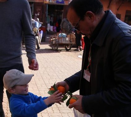 Die Stadt ist tatsächlich sehr bunt, quirlig und spannend und auch für Kinder faszinierend. Viele Marokkaner sind sehr kinderfreundlich und scherzen mit den Kindern.