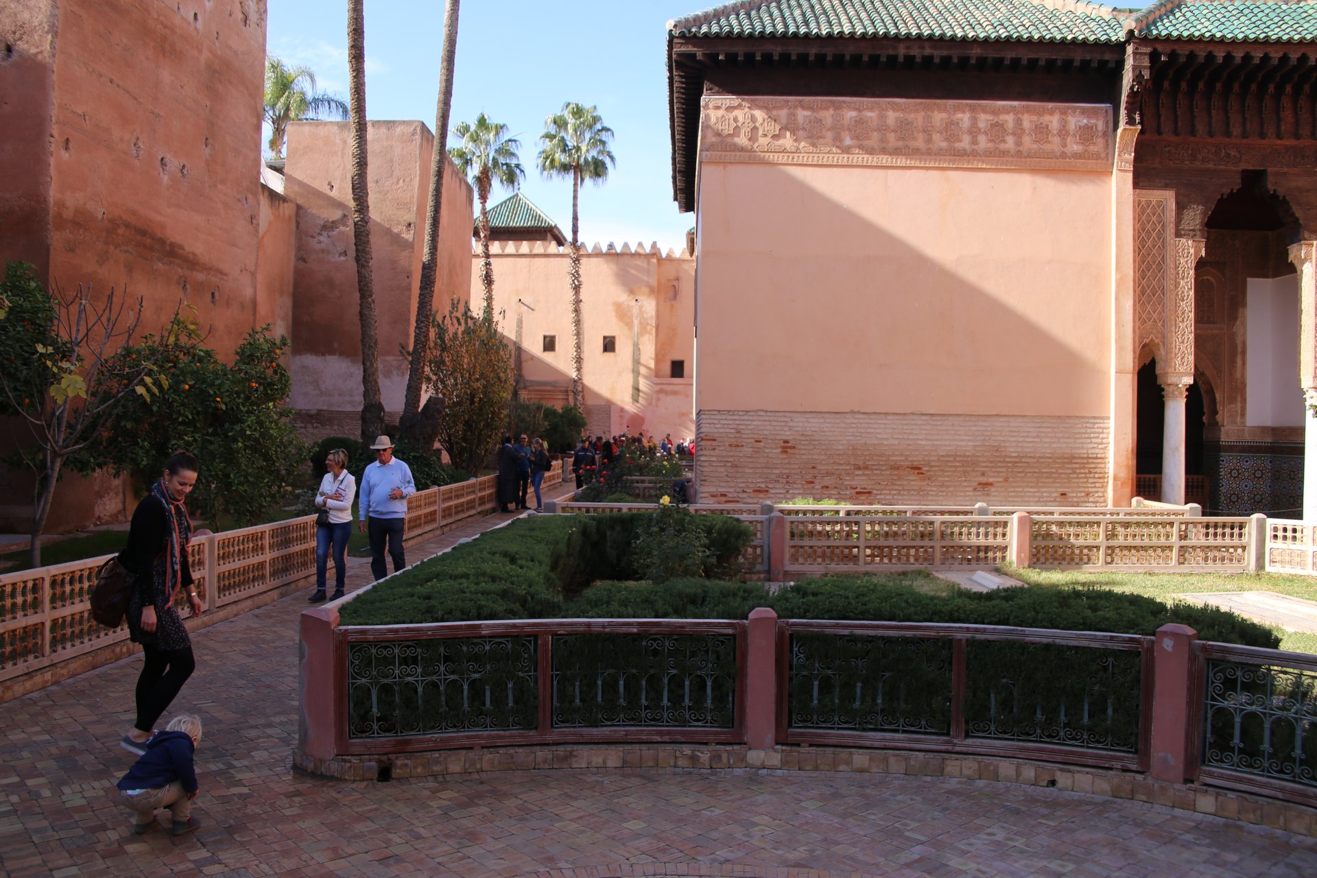 Wir starten unsere Tour im Bahia-Palast – ein beeindruckendes Bauwerk über 8000 Quadratmetern aus einer anderen Welt. Die Kinder können sich hier frei bewegen: Im Garten zwischen Orangenbäume, Zedern, Rosmarin und Pomeranzen toben sich unsere Kinder aus. Die vielen luftigen Innenhöfen mit ihren Mosaiken und kleinen Brunnen sind wirklich wunderschön – ein gelungener Start für eine Tagestour.