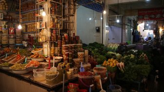 Wir laufen ein Stückchen weiter mit unserem Reiseleiter, der den kürzesten und sichersten Weg für uns als Familie durch die Altstadt wählt. Er achtet auch immer darauf, dass wir am Straßenrand gehen und passt mit auf die Kinder auf und schon sind wir in kurzer Zeit bereits in einem wunderbaren Tempel der Versuchung: Obst, Gemüse, Gewürze, Tiere, Stoffe, Tee überall ist es bunt, kräftige Farben leuchten die Kinder an.