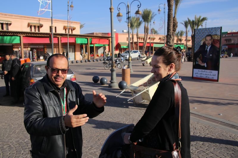 Marrakesch ist sicher nicht das klassische Reiseziel für Familien mit Kindern – die Gassen der Medina sind eng, es gibt keine gut ausgebauten Bürgersteige, viele Mopeds fahren umher… Mit unserem gut ausgebildeten Reiseleiter Hassane, der uns die wichtigsten Sehenswürdigkeiten familienfreundlich und immer mit Rücksicht auf das Wohl der Kinder gezeigt hat, war das jedoch auch mit einem Kind im Buggy und einem Kind an der Hand kein Problem.