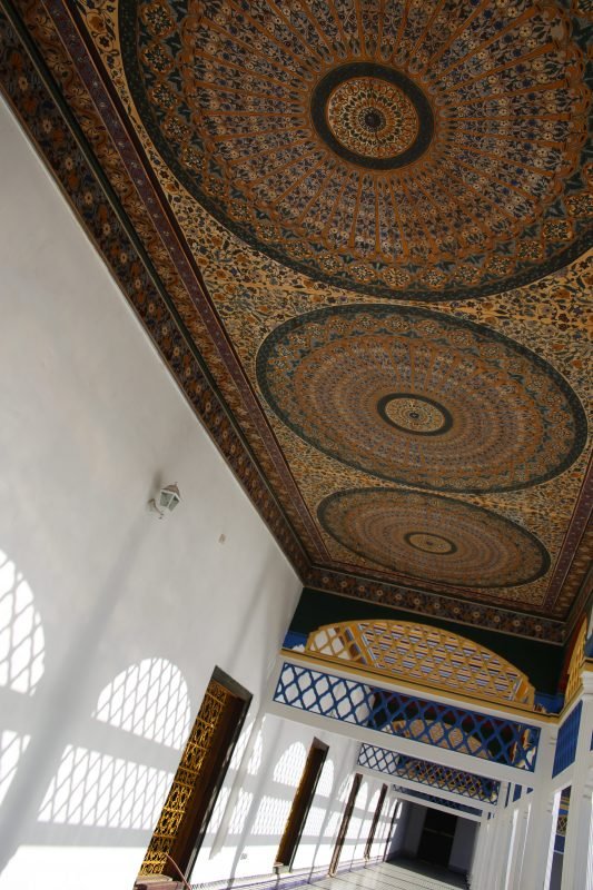 Während wir mit den Kindern das helle Bauwerk mit den vielen unterschiedlichen Räumen erkunden, erzählt uns unser Reiseleiter viele Geschichten und Anekdoten. Der Erbauer war Großwesir Ba Ahmed Ben Moussa, der Ende des 19. Jahrhunderts zum wichtigsten Mann in Marrakesch wurde und den Palast nach seiner Lieblingsfrau hieß Bahia benannt hat. Später diente der Palast auch als Filmkulisse, z. B. für „Laurence von Arabien".