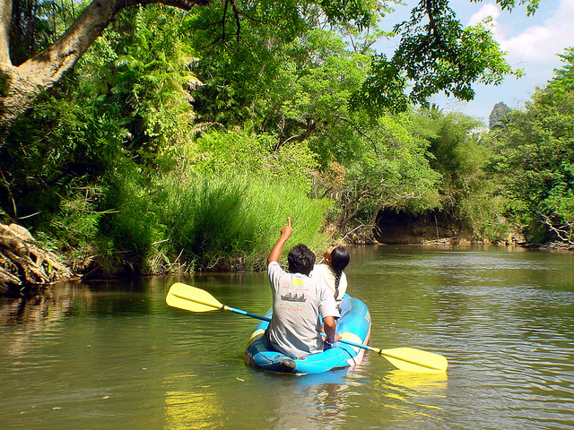 Bevor wir am Ende der Thailand Rundreise für Familien drei Tage lang in Khao Lak oder auf Koh Samui – je nach Jahreszeit – entspannen können, steht noch ein echtes Highlight auf dem Programm. Wir übernachten nämlich im Dschungel-Resort im Khao Sok Nationalpark und fahren mit einem Kanu durch den Regenwald. Es gibt viel zu sehen: Schlangen, bunte Vögel, exotische Pflanzen und auch Affen und Warane werden von uns entdeckt. Übernachtet wird im ökologischen Our Jungle Camp oder im Khao Sok Baumhaus in kleinen, aber gemütlichen Baumhäusern.