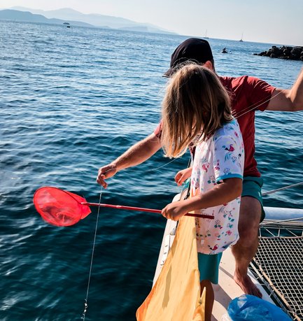 Um ehrlich zu sein, hatten wir vor unserer Reise ein paar Bedenken, ob das wirklich so eine gute Idee ist. Aber diese haben wir im wahrsten Sinne des Wortes gleich am ersten Tag über Bord geworfen. Natürlich ist auch das Segeln mit Kindern in Griechenland nicht immer eitel Sonnenschein. Neben einsamen Traumbuchten, tollen Schnorchel-Abenteuern, endlosen Kartenspielen, erfolgreichen Angelstunden, dem besten Anker-Bier der Welt und Delfinwundern, gibt es auch mal Durststrecken und Lagerkoller. Diese machen aber der ewige Meerblick, der unendliche Sternenhimmel und die aufregenden Tagestouren schnell wieder wett. Und „by the way“ werden die Kinder nach so einem Segelurlaub die besten Schwimmer der Welt sein und sind mutiger als je zuvor. Und wer kann schon behaupten mal mit Delfinen gesegelt zu sein?