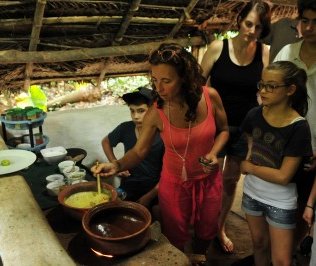 Wie man ein traditionelles Mittagessen zubereitet, erfahren wir auf beim Besuch eines Gewürzgartens in Kandy, der viertgrößten Stadt des Landes. Sie ist umgeben von Hügeln und liegt wunderschön am Fluss Mawaheli. Schon auf dem Weg nach Kandy erhalten wir einen kleinen Vorgeschmack auf das, was uns in dieser Stadt erwartet – Gewürzanbaugebiete, soweit das Auge reicht. Im Kräutergarten selbst erhalten wir zunächst eine Führung, bei der wir viele verschiedene Gewürze, wie Kardamom, Gewürznelken und Vanille zu sehen bekommen. Wir erfahren, dass der weltweit beste Zimt aus Sri Lanka stammt und lernen, dass viele der Gewürze und Kräuter in diesem Garten für Ayurveda Anwendungen verwendet werden. Anschließend erhalten wir eine Kochdemonstration, in der uns gezeigt wird, wie man ein traditionelles Linsencurry herstellt. Viele der Gewürze, die wir zuvor bei der Führung um Gewürzgarten bestaunen konnten, finden wir als Zutaten in unserem Curry wieder.
