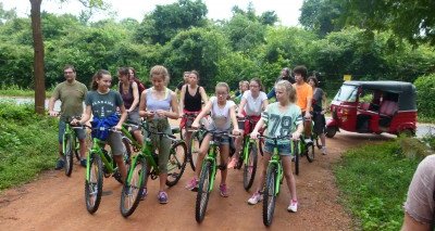 Er erklärt uns, dass Elefanten nachts auf ihrer Futtersuche mehrere Kilometer zurücklegen, denn sie fressen täglich bis zu 300 kg und trinken etwa 100 Liter Wasser. Auf unserer Tour passieren wir unzählige Reisfelder, die von den Bewohnern des Dorfes bewirtschaftet werden. Die Dorfbewohner winken uns fröhlich zu, als wir mit unseren Rädern an ihren Häusern vorbeiradeln. Richtig Spaß macht allen Familien auch die mehrstündigen Raftingtour auf dem Fluss Kelani, dem zweitlängsten Fluss Sri Lankas. Natürlich darf am Ende eine Erfrischung im Fluss nicht fehlen.