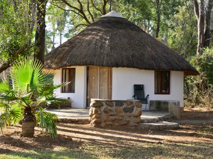 Ich beziehe meinen Bungalow, der in Afrika meist als Rondavel bezeichnet wird, und schaue mich erst einmal auf dem Gelände um. Die Rondavel liegen großzügig verteilt auf dem Gelände und verfügen alle über ein eigenes Bad, einer Außenküche und einer Terrasse. Das große Restaurant mit Außenterrasse und Blick auf den Pool und über das weitläufige Gelände, lädt zum Verweilen ein.