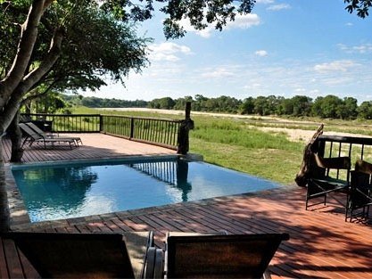 Ich beziehe das Chalet mit dem Motto: Löwe. Das Zimmer ist groß und im typischen afrikanischen Stil eingerichtet. Das Bad verfügt neben einer Badewanne auch über eine Außendusche. Die Umkumbe Lodge bietet Platz für maximal 30 Gäste. Das offene Restaurant mit großer Terrasse und Bar grenzt unmittelbar am Sonnendeck und Infinity Pool mit Blick auf den Sand River.