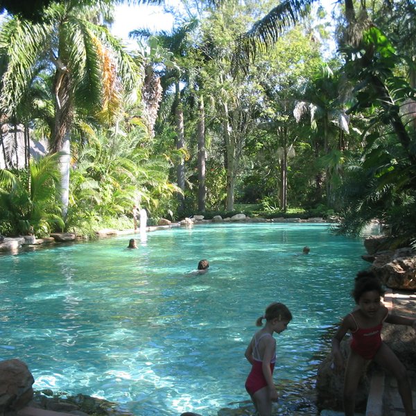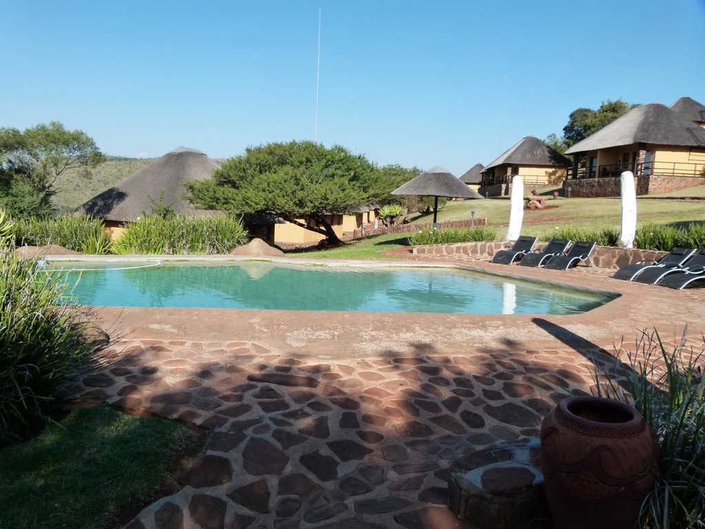 Ein Shuttle-Bus sorgt dafür, dass alle Gäste ihre Rondavel, die sich auf dem kompletten Gelände befinden, erreichen. Die Rondavels sind rietgedeckt und im afrikanischen Stil eingerichtet und mit eigenem Bad ausgestattet. Am Morgen begebe ich mich zum Frühstück, aber vorher lege ich noch einen kurzen Stopp am Thermalwasser-Pool ein, um einmal kurz den großen Zeh in das 34 °C warme Wasser zu halten. Weiter geht es zum Restaurant.