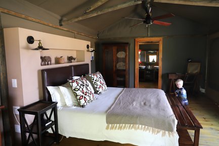 Während eures Aufenthalts übernachtet ihr in familienfreundlichen Zelten, die sich auf einem riesigen Areal verteilen. Seid gespannt auf die Nyalas, diese Antilopen laufen hier freilebend herum und stellen natürlich keine Gefahr da. Ich durfte im Zelt direkt am Wasserloch übernachten, das war einmalig.