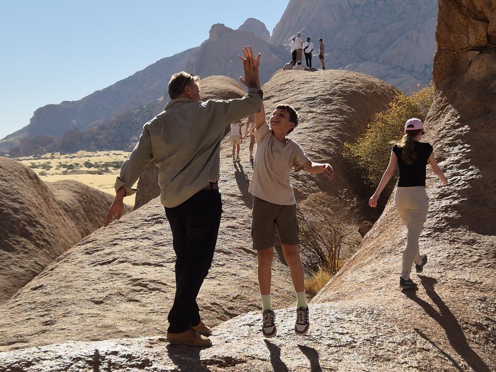 Auch für Eltern bietet eine Gruppenreise zahlreiche Vorteile. Besonders Namibia Erlebnisreisen in der Gruppe mit Guide sind stressfrei, da die Eltern das Programm und die Fahrten nicht selbst koordinieren müssen und sich stattdessen entspannt zurücklehnen und die Eindrücke in Ruhe genießen können. Alle Aktivitäten werden von den einheimischen Reiseleitern professionell organisiert, die Unterkünfte sind fest gebucht und die Route ist optimal geplant. Gemeinsame Lagerfeuerabende, Mahlzeiten und die atemberaubende Landschaft schaffen intensive Familienmomente, ohne dass Eltern den Ablauf selbst arrangieren müssen. So können Eltern und Kinder gleichermaßen die beeindruckende Natur Namibias genießen, Tiere beobachten – von den „Big Five” bis zu den „Little Five” – und dabei Erinnerungen sammeln, die lange bleiben.