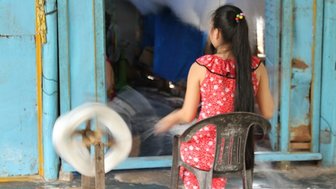 Für die Nacht sind wir zu Gast im Holzhaus einer Hmong-Familie, den Angehörigen eines der Bergvölker. Fünf Kinder sind Teil der Familie und ganz ohne Worte verstehen sie sich mit unserem großen Mädchen. Sie toben gemeinsam, spielen Karten und streunen ums Haus herum.