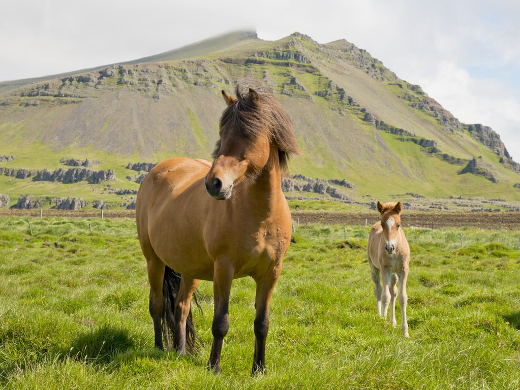 Islandpferde sind robuste und genügsame Ponys, die draußen gehalten werden. Ihre 4. und 5. Gangart, Tölt und Pass, machen die Islandpferde einzigartig. Es bieten sich zahlreiche Möglichkeiten, im Urlaub mit Kindern in Island Reitausflüge zu machen und die Natur hoch zu Ross zu entdecken.
