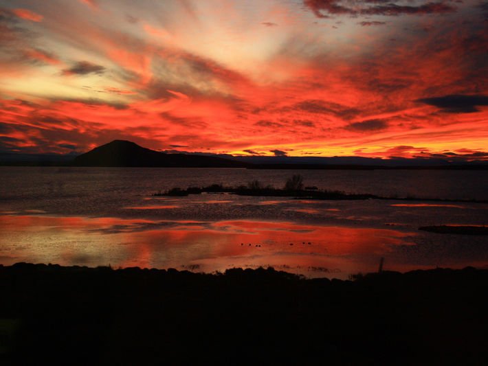 In den Sommermonaten Juni und Juli bleibt es im Norden Islands über Nacht hell. Die Dämmerung zieht sich abends ewig hin und hört nicht auf, bis sie nahtlos in die Morgendämmerung übergeht. Ihr könnt die Sonne dabei beobachten, wie sie am Horizont entlang wandert.