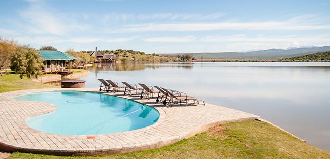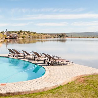 Von der Buffelsdrift Game Lodge hat man einen einzigartigen Blick auf die Swartberge. Die Lodge befindet sich in unmittelbarer Nähe zu einem Wasserloch in der Halbwüste Klein Karoo - in malariafreiem Gebiet. Vom Pool aus hat man einen sensationellen Blick auf die Wasserstelle und kann beim Baden und toben vielleicht sogar Nashörner oder Giraffen beobachten. Die Lodge ist der perfekte Ausgangspunkt für Pirschfahrten, Safaris und Ausflüge. Sie liegt nur wenige Fahrminuten von den bekannten Cango Caves entfernt.