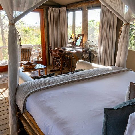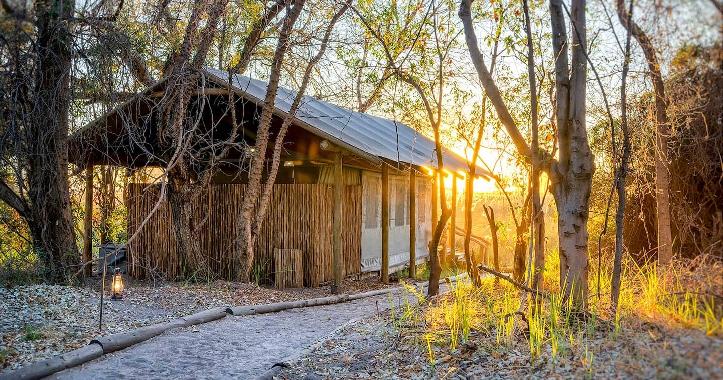 Euer Camp Xakanaxa liegt am Ufer des Flusses Khwai an der Lagune Xakanaxa, im Herzen des Wildreservats Moremi. Hier erlebt ihr ein authentisches, ganzjähriges Okavango-Delta-Land- und Wassersafari-Abenteuer. Das Camp bietet Platz für vierundzwanzig Gäste in zwölf geräumigen, luxuriösen Safarizelten im Meru-Stil, die mit Dusche und Waschbecken ausgestattet sind. Jedes Zelt befindet sich am Rand der Lagune und verfügt über eine private Aussichtsplattform mit bequemen Liegestühlen.