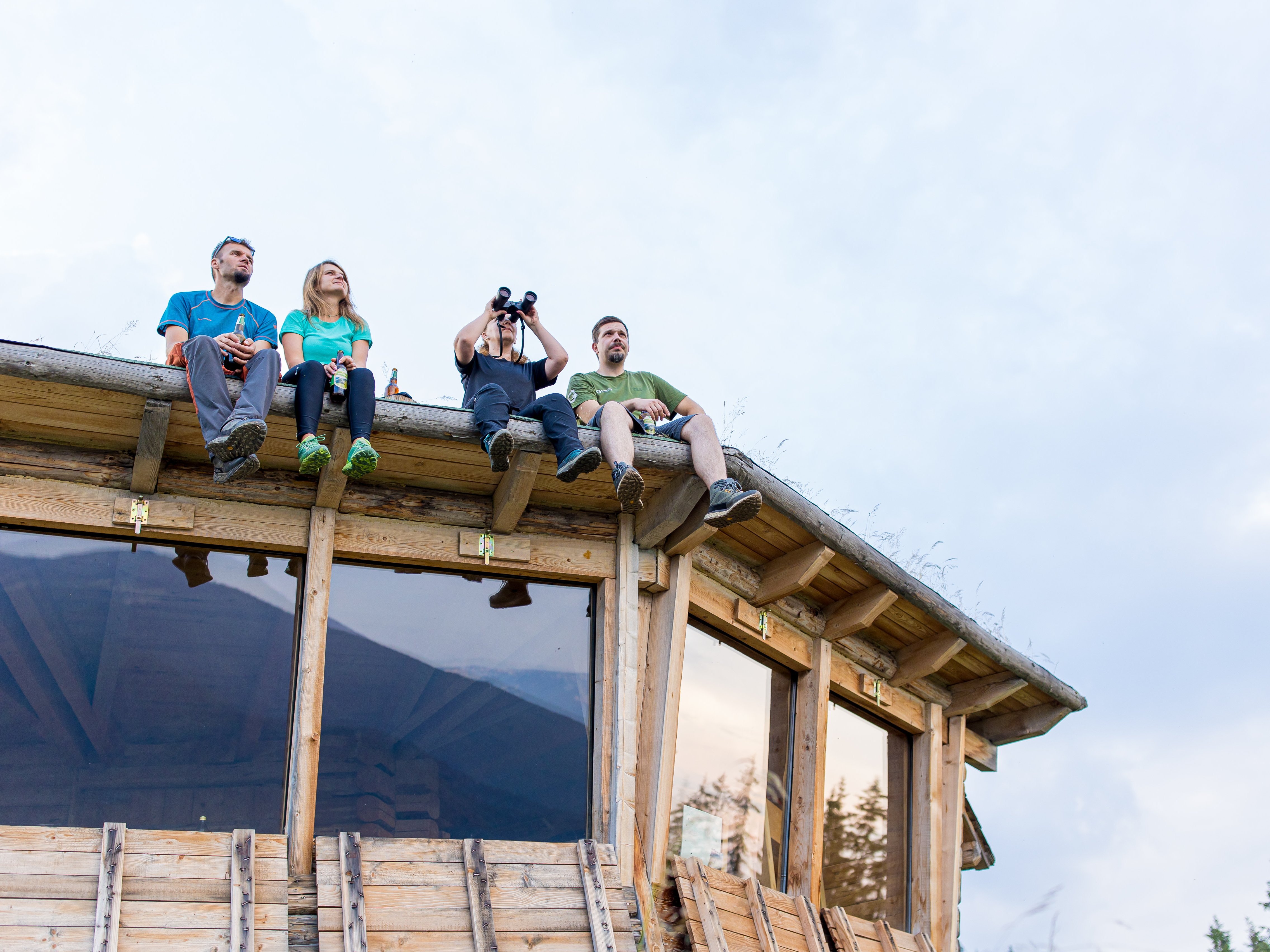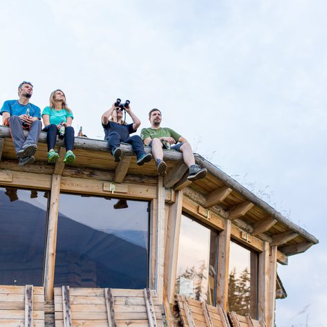 Von der Hütte aus lassen sich spannende Tierbeobachtungen unternehmen: Aus der speziell gesicherten Bärenhütte können wir mit etwas Glück Wildtiere in ihrer natürlichen Umgebung beobachten, ohne sie zu stören. Abends genießen wir Lagerfeuerromantik unter dem Sternenhimmel und die absolute Ruhe der abgelegenen Berglandschaft.