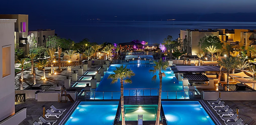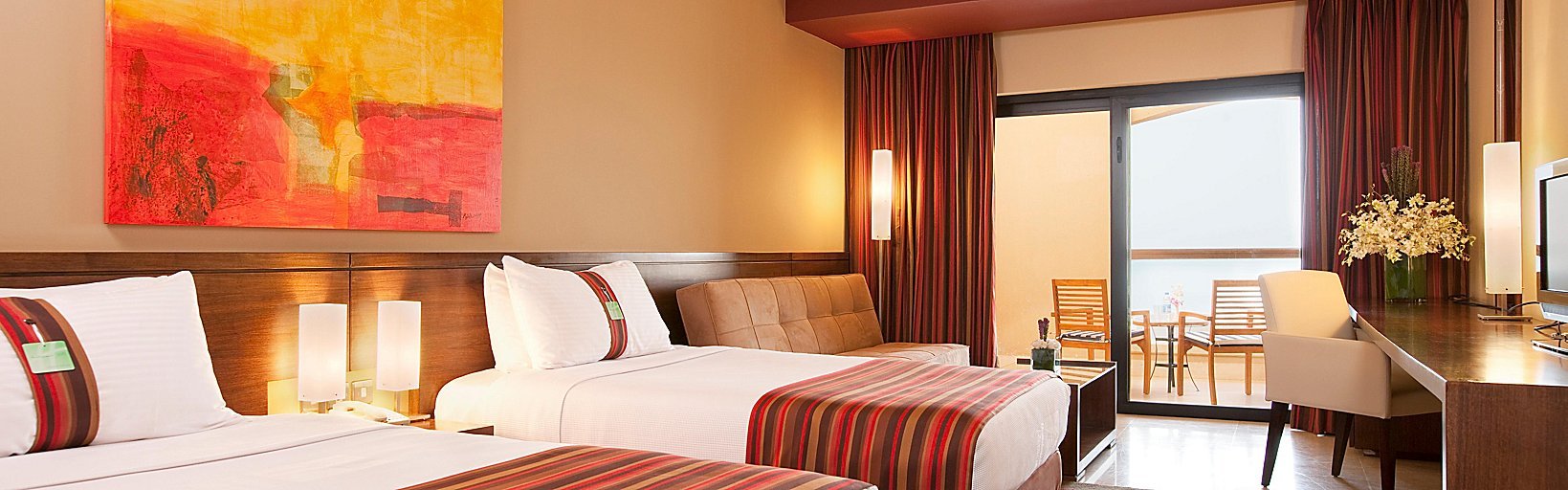 An der Küste des Toten Meeres erwartet euch das Holiday Inn Resort Dead Sea. Umgeben von einem wunderschönen Garten mit Palmen ermöglicht das Resort seinen Gästen den Zugang zum hoteleigenen Strandbereich. Drei Swimmingpools und zahlreiche Sonnenliegen auf dem Gelände laden zusätzlich zum Entspannen ein. Die verschiedenen Restaurants des Hotels bieten sowohl regionale als auch internationale Gerichte an, und auf der tollen Sonnenterrasse könnt ihr im Anschluss bei Live-Musik den Abend gemütlich ausklingen lassen. Ein Bereich für die Kinder sowie ein Spabereich mit Sauna und Whirlpool gehören ebenfalls zur Ausstattung des Resorts.