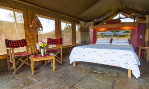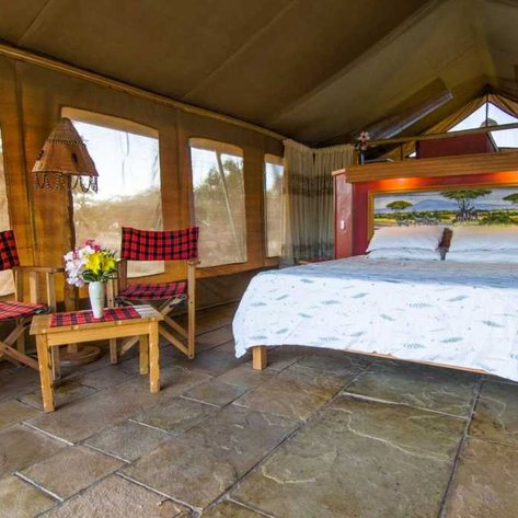 Ihr übernachtet im Camp in geräumigen Safarizelten, die mit einem eigenen Badezimmer, bequemen Betten und einer Minibar ausgestattet sind. Zudem findet ihr hier Kaffee- und Teezubereitungsmöglichkeiten sowie eine eigene Terrasse.