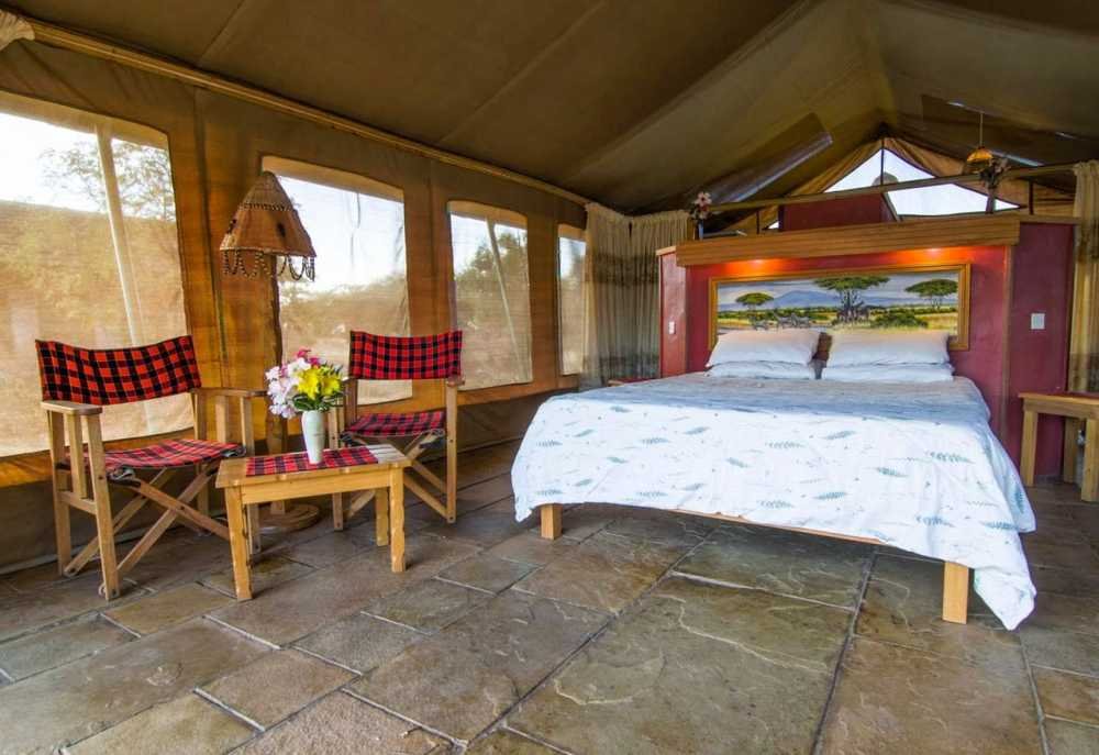 Das Amboseli Sentrim Camp verfügt über einen weitläufigen Garten, ein Restaurant und einen schönen Pool. Am gemütlichen Lagerfeuerplatz habt ihr an manchen Abenden die Chance, euch mit Massai-Kriegern auszutauschen und spannende Informationen über deren Kultur zu erhalten. Das Camp wurde aus lokalen Materialien erbaut und fügt sich dadurch gut in die umliegende Umgebung ein. Die Unterkunft zeichnet sich außerdem durch einige Energie- und Wassersparmaßnahmen aus, die der Nachhaltigkeit zugutekommen.