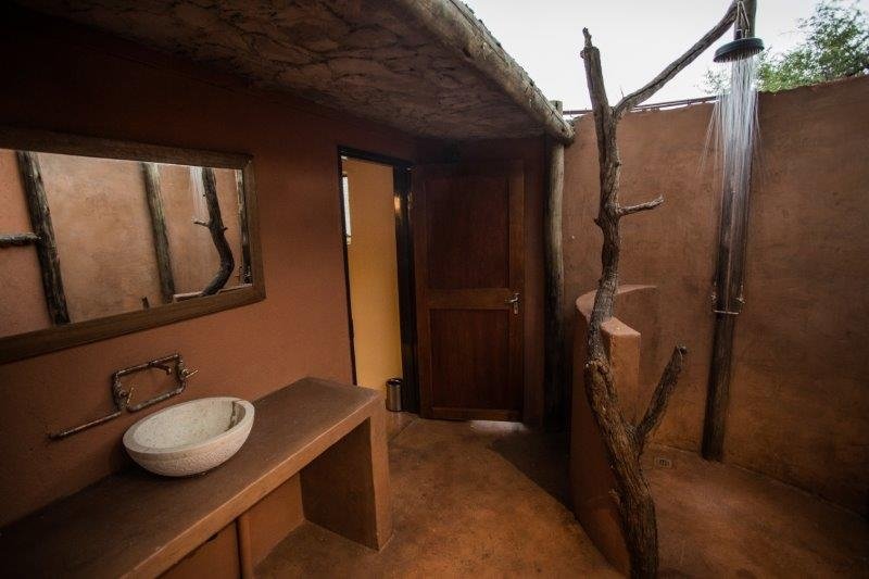 Die Campingplätze sind etwa 3 km von der Hauptlodge entfernt und liegen versteckt im Gebüsch direkt an einer Wasserstelle, die von kleineren, ungefährlichen Tieren regelmäßig besucht wird. Jeder Campingplatz bietet heißes/kaltes Wasser, Licht, ein eigenes Badezimmer mit Toilette und Dusche, Abwaschbecken, 220 V Stromanschluss, eine Feuerstelle mit Holz und einen kleinen Tisch.