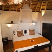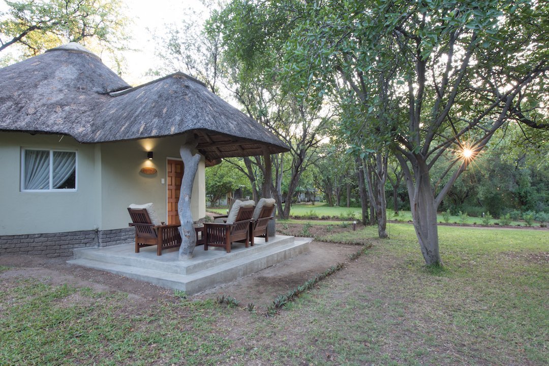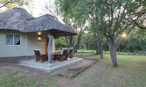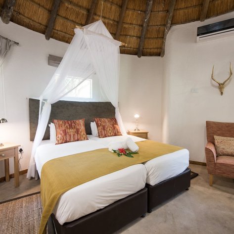 Die Lodge besteht aus einer Gruppe von im afrikanischen Stil gehaltenen Rundbauten (Rondavel) mit Strohdach, die im Schatten der Bäume liegen. Sie alle verfügen über eine Klimaanlage, ein Badezimmer en-suite, einen Kühlschrank, die Möglichkeit zur Tee- oder Kaffeezubereitung sowie eine Veranda. In den Hölzern und Büschen des Dammes verstecken sich unzählige farbenprächtige Vögel, die von euch ganz unbemerkt beobachtet werden können. Die Lodge bietet euch aber nicht nur einzigartige Unterkunft, sondern auch die Gelegenheit, die südafrikanische Tierwelt hautnah zu erleben.