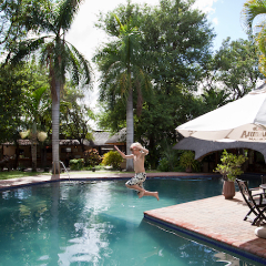 Die Sefapane Lodge befindet sich nur einen Kilometer vom Krüger Nationalpark entfernt. Ihr übernachtet in komfortablen Rundbauten mit Strohdach, die im Schatten der Bäume liegen. Ein großer Swimmingpool mit eingelassener Bar und das Restaurant verbreiten tropisch afrikanische Atmosphäre.