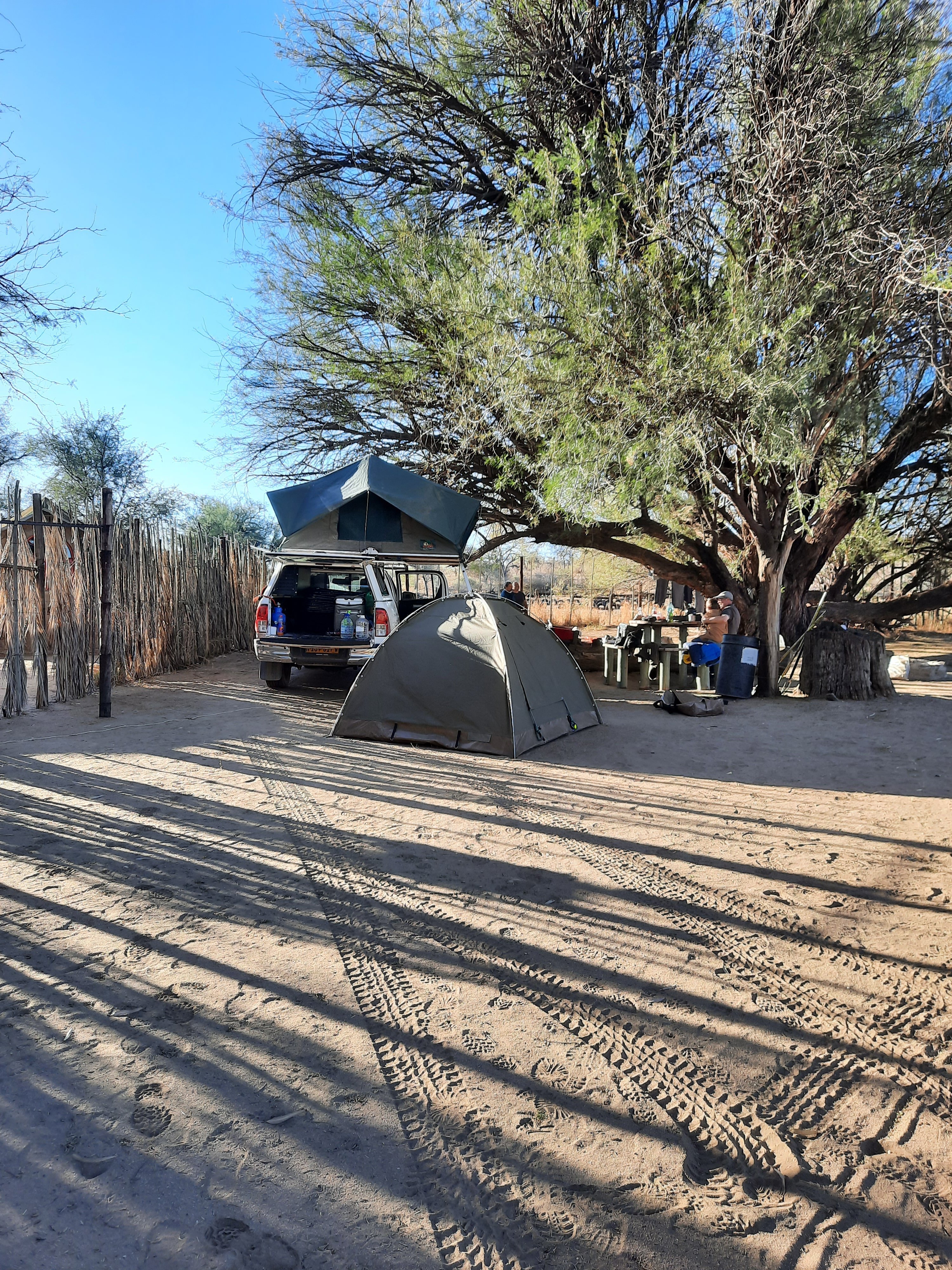 Eines davon ist das Busch Camping, ein kleiner eingezäunter Campingplatz mit 5 Stellplätzen. Er ist umgeben von schattenspendenden Palmen und anderen Bäumen. Alle 5 Stellplätze haben einen eigenen Lichtpunkt und eine eigene Steckdose. Jeder Stellplatz hat einen Tisch mit Sitzbank und eine Grillstelle. Außerhalb des Zaunes gibt es 2 Badezimmer (Dusche und Toilette), getrennt für Damen und Herren. Auch gibt es eine Spüle für das Geschirr. Außerdem steht Ihnen fließend warmes und kaltes Wasser zur Verfügung.