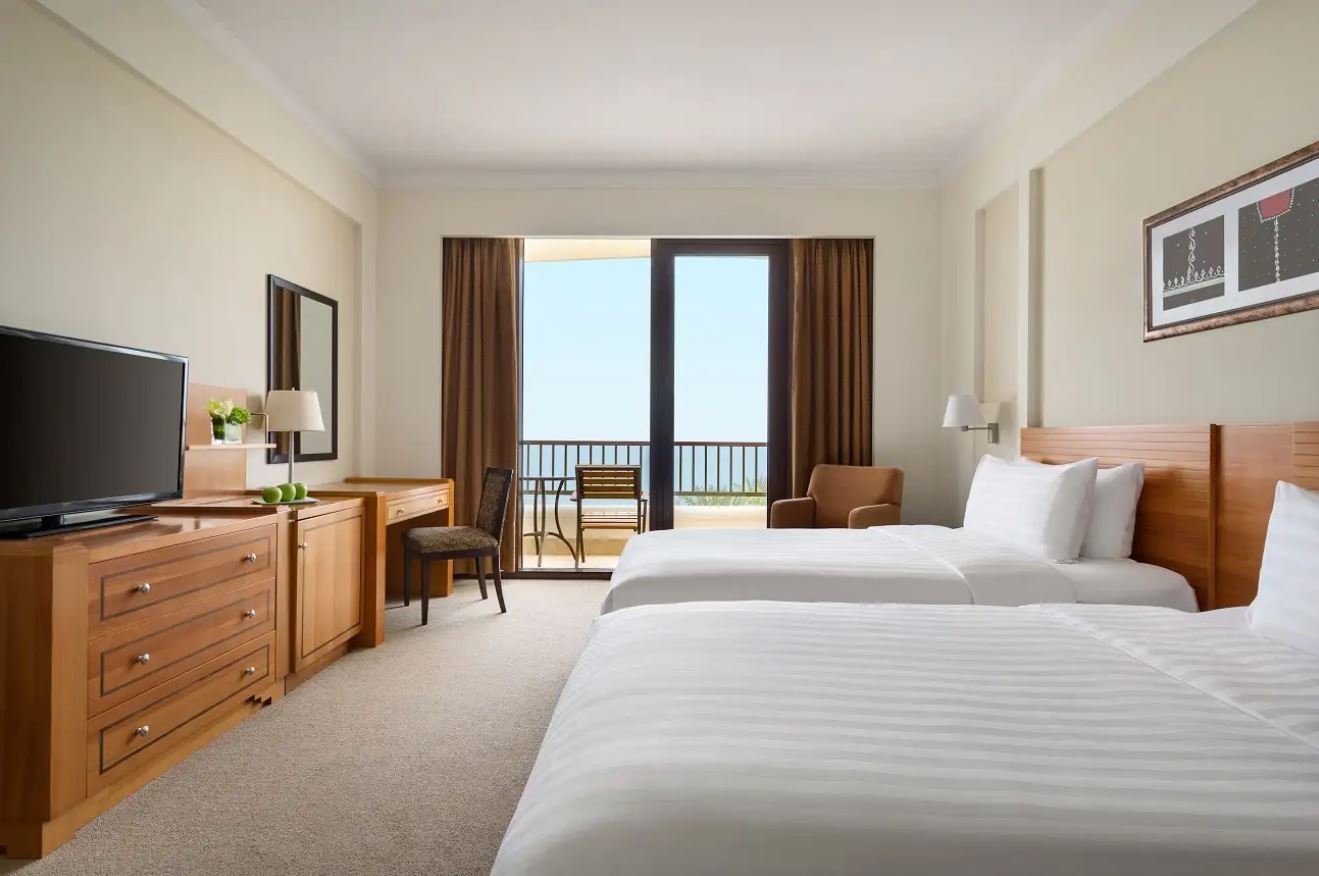 Das DoubleTree by Hilton Muscat Al Waha ist ein ideales Familienresort an der traumhaften Küste Omans. Eingebettet zwischen dem türkisblauen Meer des Golfs von Oman und den beeindruckenden Felslandschaften des Hajar-Gebirges bietet das Hotel eine gelungene Mischung aus Badeurlaub, Komfort und orientalischem Flair – perfekt für Familien, die Erholung und Erlebnis verbinden möchten.
