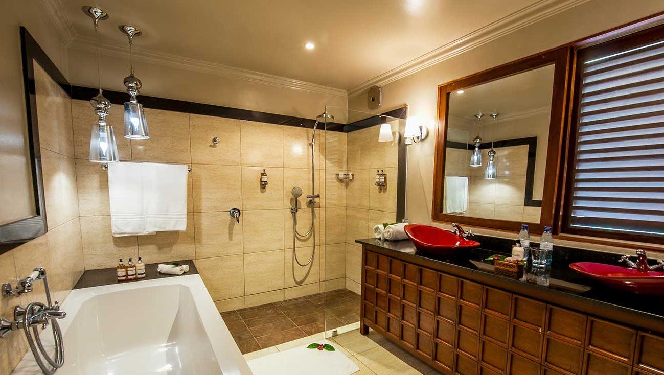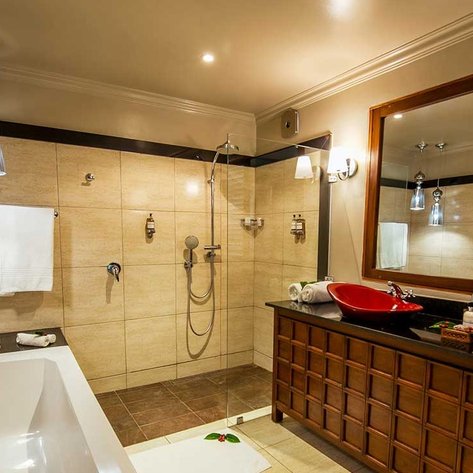 Eine von Bäumen gesäumte Auffahrt führt euch in den einladenden Hauptbereich, der mit dezenter Eleganz und einer friedlichen Atmosphäre überzeugt. Neben lebhaften Gärten bietet die Lodge ein Spa, einen Swimmingpool sowie erstklassige kulinarische Erlebnisse: Im Restaurant Bacchus und im Café-Bistro 3° South werden lokale Zutaten mit internationalem Können zu unvergesslichen Gerichten kombiniert.